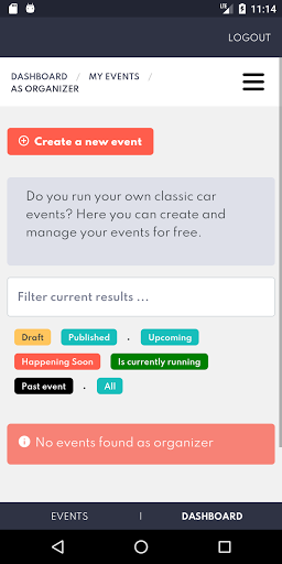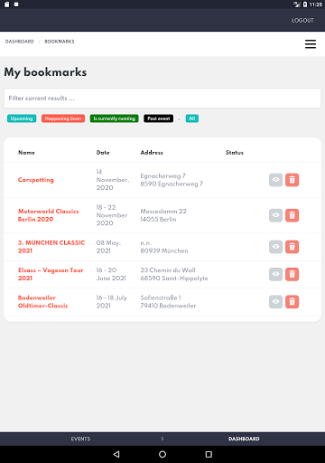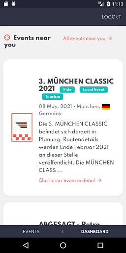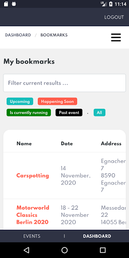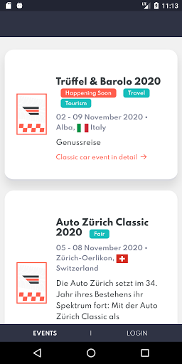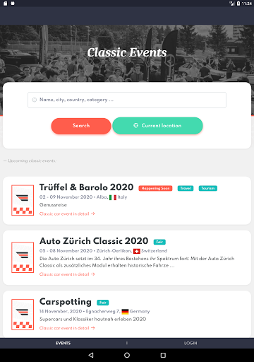 Never miss a classic car event again. Search, find and remember your events in your own account and keep track of them.