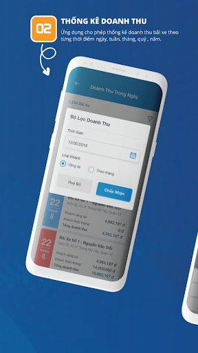 + Thống kê hoạt động doanh thu bãi xe theo ngày, tuần, tháng, quý, năm