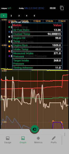 Up to 5 virtual screens for the Graph view with different PIDs variations