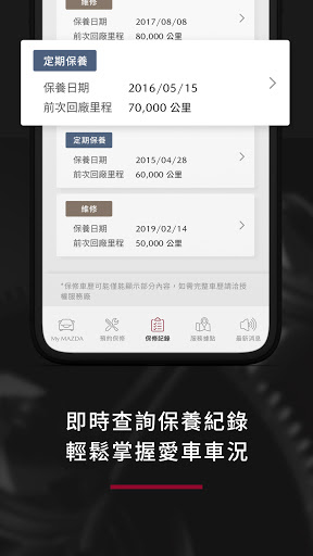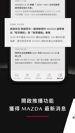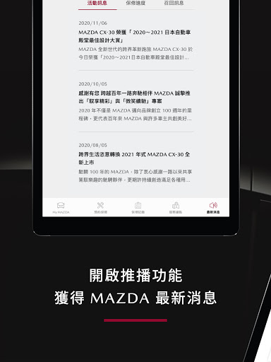 ‧包含 MAZDA 最新活動消息、回廠保修進度等各項資訊。