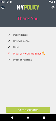 Lightweight application for My Policy customers to verify the details provided when purchasing their motor insurance policy and provide any additional information required. This serves as a one-time validation of your policy, in order to insure with My Policy. After logging into the app, customers are asked to submit photos of various documents, like driving license and proof of no claims bonus, to verify the details declared when taking out the policy. The application has a simple user interface through-out the process and won’t take much time.
