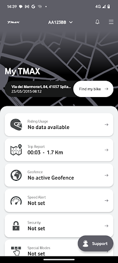 My TMAX Connect powered by Vodafone allows you to remotely access your TMAX (only specific models), for example, to locate the bike, receive an alert when the bike battery is low or activate the horn and blinker.