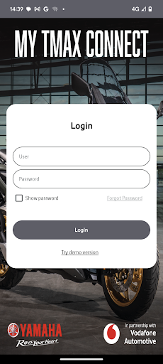 My TMAX Connect is part of the standard equipment of TMAX specific models and includes an embedded telematics system that must be activated. For more information, please contact your Yamaha dealer.