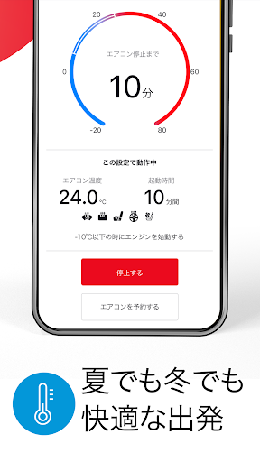 アプリからエアコンを起動して、出発前に車内を快適な温度に調整できます。スケジュール設定で事前予約も可能です。