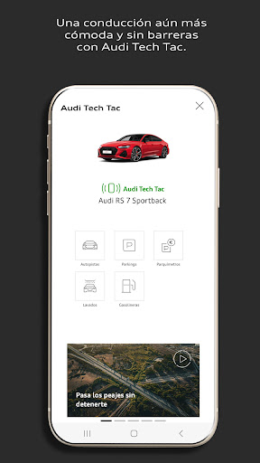 Además, desde myAudi&Me podrás solicitar el Audi Tech Tac: un dispositivo de telepago con el que podrás pasar sin barreras ni tickets en peajes, parkings, parquímetros, gasolineras y túneles de lavado, además de obtener descuentos mensuales exclusivos por su uso. Un dispositivo que facilitará aún más tu conducción para que nada te frene.