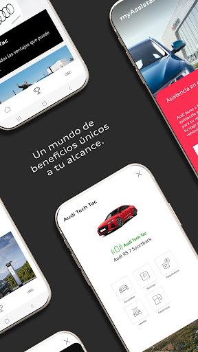 Es la app exclusiva para clientes Audi. En ella podrás conseguir descuentos y experiencias únicas, conocer las novedades de la marca en primicia, recibir avisos sobre tu próximo mantenimiento y reservar cita previa en tu Servicio Oficial Audi favorito, hablar directamente por chat tu asesor Audi, además de poder solicitar asistencia en carretera en un solo clic, si lo necesitas.