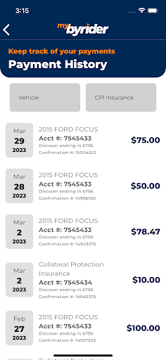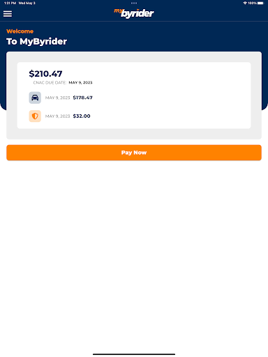 Welcome to the Byrider App! This free App allows you to improve your ownership experience of the vehicle you purchased from a Byrider dealer. You can manage and make payments for your CNAC account. The app allows you to do the following: