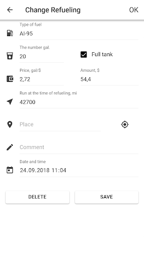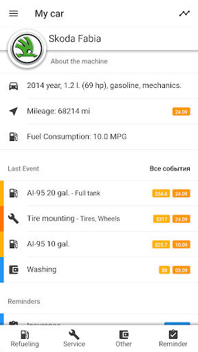 This application realizes the ability to keep records of the fuel consumption as well as to do the calculation of expenditures for the car in a fast and easy way.