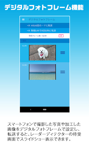 スマートフォンのカメラ機能を使って撮影、またはフォトギャラリーの画像をASSURAで利用できるデジタルフォトフレーム用データに変換します。