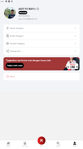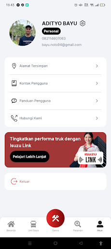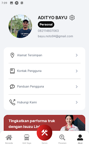 1. Profile, memuat data diri dan data unit Isuzu yang Anda miliki