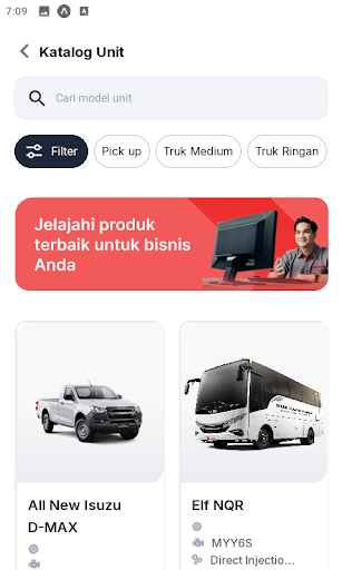 4. Informasi produk, memberikan informasi secara end to end terkait unit Isuzu yang meliputi lini produk isuzu dan spesifikasi produk. Anda juga bisa melakukan permintaan presentasi produk dan penawaran harga