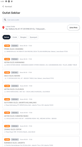 5. Informasi jaringan, Anda bisa mencari jaringan Isuzu yang meliputi Outlet, Bengkel Mitra Isuzu dan Toko Suku Cadang