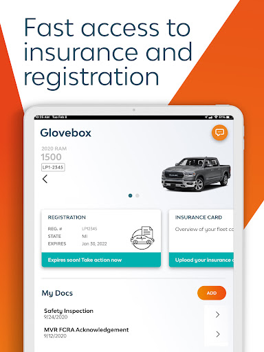 A Digital Glovebox stores your fuel card PIN, registration and insurance information for ready access and fast registration renewals. We can even help you assess and improve your performance as a fleet driver with our in-app OneScore ratings. Need policy support? Just ask your virtual assistant, Elle.