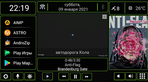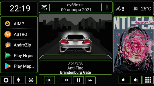 This application is ONLY a theme – graphic design with non-standard markup for the CarLauncher app. It does NOT affect the performance of the Car Launcher app widgets (as well as system widgets placed on the desktop in the Car Launcher app), such as: processor temperature, weather forecast, number of GPS satellites / positioning of map widgets, notifications from other applications, etc. …