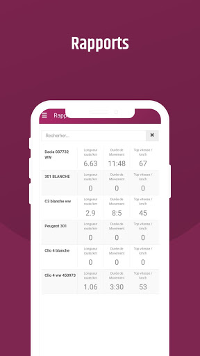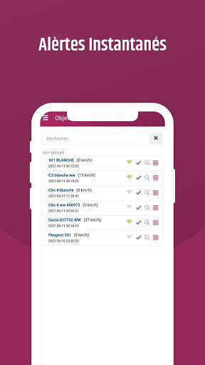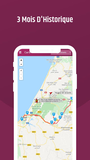 Suivez vos véhicules en temps réel. De plus, le système enregistre les adresses, les distances et les vitesses effectuées par vos véhicules