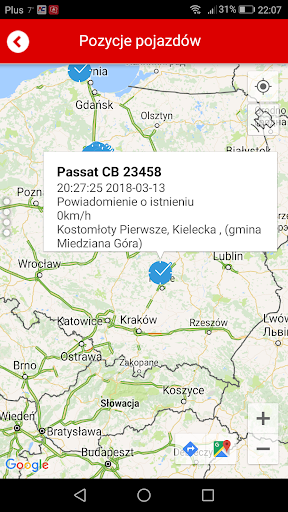 – precyzyjna lokalizacja wybranego pojazdu lub wszystkich pojazdów na mapie