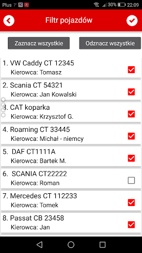 – czytelna lista pojazdów z opisem gdzie się znajdują i co robią