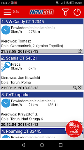 Aplikacja mobilna do monitorowania pozycji pojazdów z systemem lokalizacji GPS Navicar.