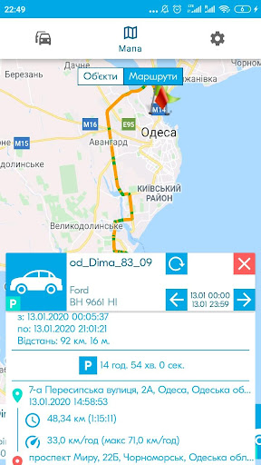 Додаток при наявності додаткового обладнання дозволяє отримувати доступ користувача до даних розташування об’єктів та статистики їх руху, швидкісного режиму. Також є можливість бачити сповіщення про зміни стану, події, контролювати проходження технічного огляду.