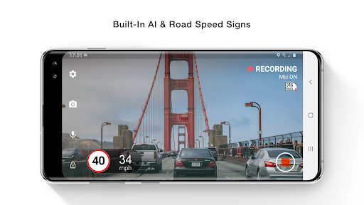 AI Dashcam by Navmii! A free application with built in Artificial Intelligence, which constantly analyses the road ahead providing useful information for your journey all whilst recording the road ahead.