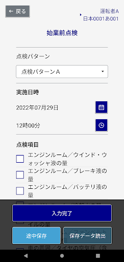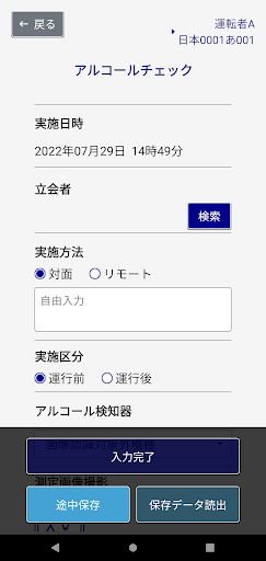 本アプリを利用して、スマホアプリから運転者が車両使用の開始、終了を入力することで運転日誌作成支援、始業前点検やアルコールチェック結果を入力することができます。