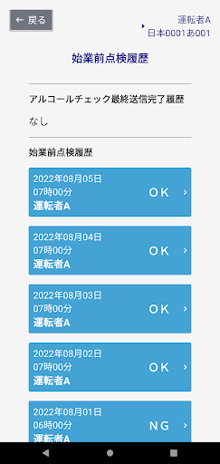 運転者がスマホで入力した結果は、NCSドライブドクターのWeb画面と連携して管理者確認することができます。