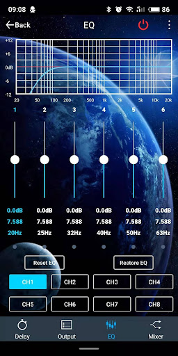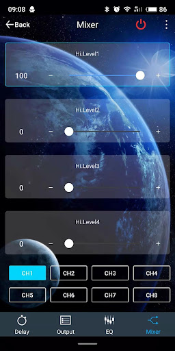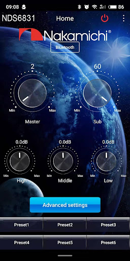 The Nakamichi mobile phone NDS6831 DSP APP connects with NDS6831 by utilizing a wireless bluetooth interface for superior DSP control