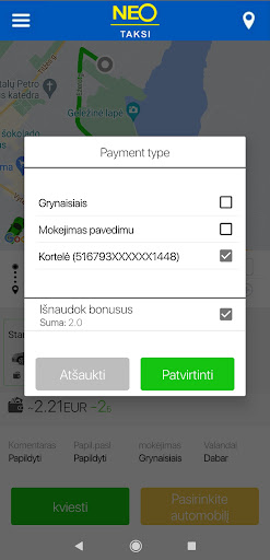 1. Atsidarome NEO taksi programėlę ir patiksliname iškvietimo vietą.