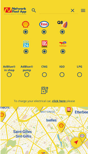 The Network Fleet App shows all the sites where you can fuel or charge your (electrical) car at Shell, Q8, Esso, Dats 24,TotalEnergies and Lukoil in Belgium & Europe. The Network Fleet Card offers you the largest network of gas stations (2000 sites in Belgium and 25.000 in Europe) and the app will show you the nearest stations to your position (geo-localization) wherever you are in Belgium or in Europe. So, the app will save you precious time to find the nearest site from your position.