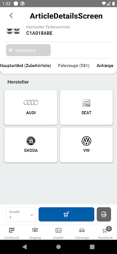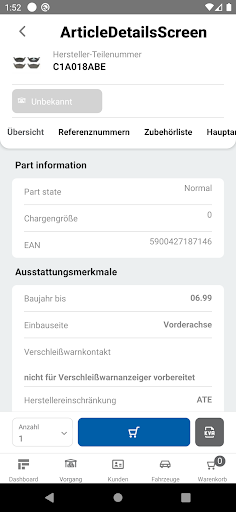Zu jedem Artikel werden in der App alle relevanten Informationen wie zum Beispiel technische Eigenschaften oder Produktabbildungen angezeigt. Des Weiteren finden Sie zu den Artikeln die verknüpften OE Nummern sowie die Informationen in welchen Fahrzeugen diese Ersatzteile verbaut sind. Die Anwendung eignet sich für den Einsatz in Werkstatt, Handel und Industrie.Anwender können schnell und gezielt über eine Nummerneingabe nach einem Fahrzeugteil oder einem Fahrzeug suchen und ermitteln, in welche Fahrzeuge das Ersatzteil passt bzw. welche Teile für das Fahrzeug benötigt werden. Die Suche ist ebenfalls über eine Scanfunktion des EAN Codes möglich. Mögliche Suchkriterien für eine schnelle Teileidentifkation sind eine beliebige Nummer, die Artikelnummer, eine OE-Nummer, die Gebrauchsnummer oder die Vergleichsnummer.Für die vollständige Funktionsnutzung der App wird eine bestehende Next TecCat Lizenznummer und ein Passwort benötigt. Weitere Infos unter oder die Aktivierung der Lizenzen erhalten Sie unter +49 4532 201 401 oder [email protected].