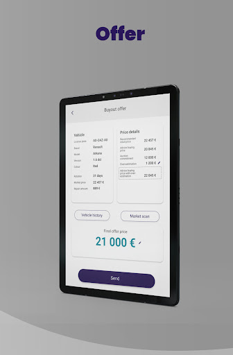 The application takes into account the vehicle’s market price and reconditioning costs to generate a ready-to-use commercial proposal.
