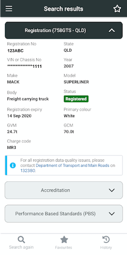 A national heavy vehicle registration checker mobile application to assist industry and drivers meet their pre-checks and Chain of Responsibility obligations. The registration checker application will provide anonymous public access to a subset of the NHVR National Registration database.