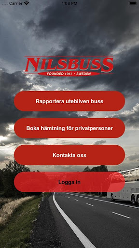 Nilsbuss APPEN! Vårt primära syfte är att våra kunder på bokade resor kan få löpande information om sin resa. Man kan även boka hämtning och rapportera utebliven buss