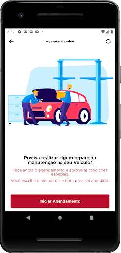 Você pode agendar seu veículo, consultar estoque de novos e usados, visualizar histórico de ordens de serviço.