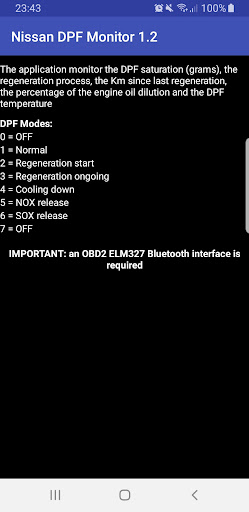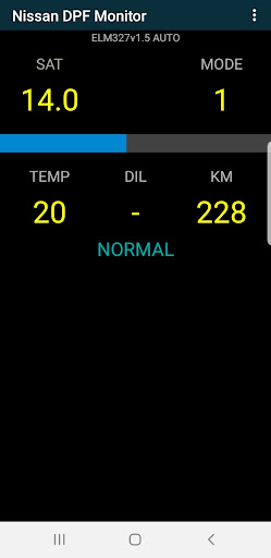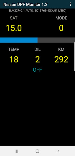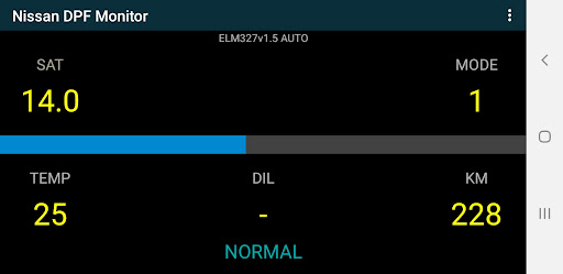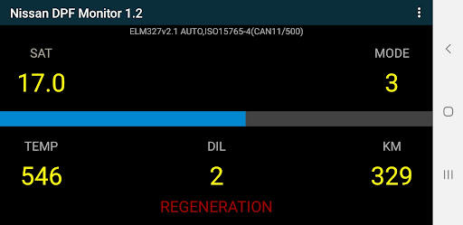 The data shown is the DPF saturation, Km since last regeneration, DPF mode, Oil dilution and DPF temperature.