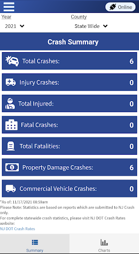 NJCrash mobile application provides a revolutionary new approach for viewing, creating, and submitting New Jersey crash reporting data. Crash data and statistics are available to the public via easy to use query-able dashboards and statewide crash data links.