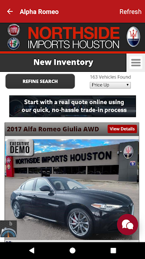 Northside Alfa Romeo Maserati mobile customer engagement app provides customers with an enhanced dealership mobile experience. The app uses background geo-location for geo-fencing and geo-targeted push notifications to provide customers with relevant specials and loyalty offers. The app also delivers a wide range of features/benefits to customers, including service scheduling, viewing new and used inventory, redeeming mobile offers, sharing dealer promotions, viewing special events, contacting roadside assistance, booking a test drive, and contacting staff directory.