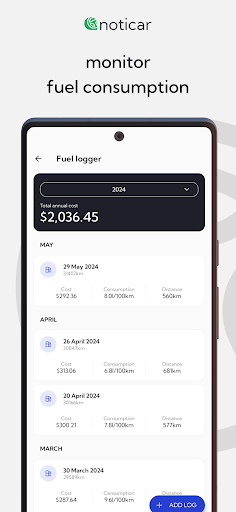 • Fuel logger – monitor fuel consumption and save on vehicle operating costs.