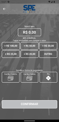 Compre créditos de estacionamento utilizando seus cartões de crédito ou débito.