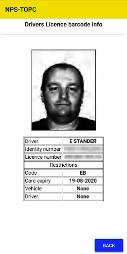 Vehicle drivers license barcode information is displayed on this app see https://www.gov.za/services/driving-licence/renew-driving-licence on who should register a drivers license card.