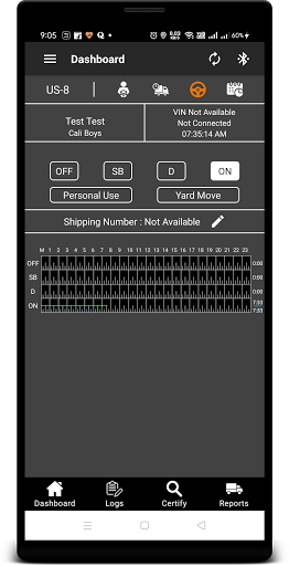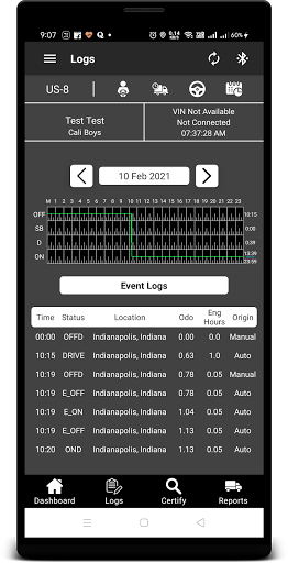 Engine and location data is captured by a device mounted in the vehicle which then forwards the data to the app to later be used in combination with the driver’s reported duty status. The app also serves as a method for Drivers to check and transfer eRODS data to the FMCSA in case of a roadside inspection
