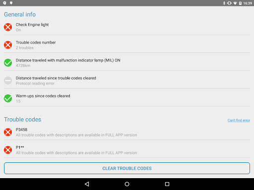 – You will see diagnostic trouble codes which were hidden with asterisks in the free version;