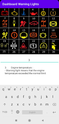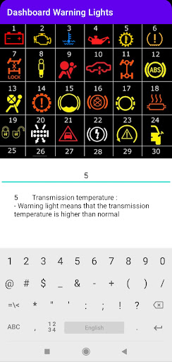 – OBD II fault codes app. contains dashboard warning symbols with brief description of each one .