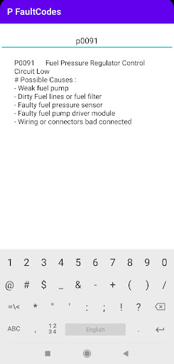 – OBD II fault codes app. contains generic OBD II fault codes with brief description ( P fault codes , B fault codes , C fault codes , U fault codes ) .