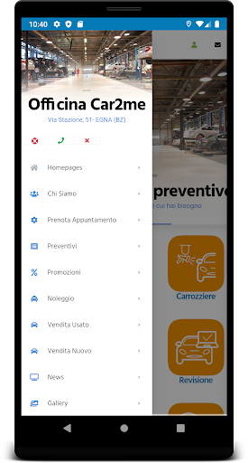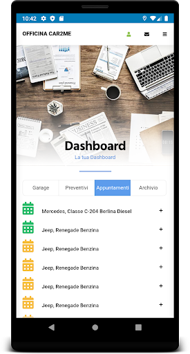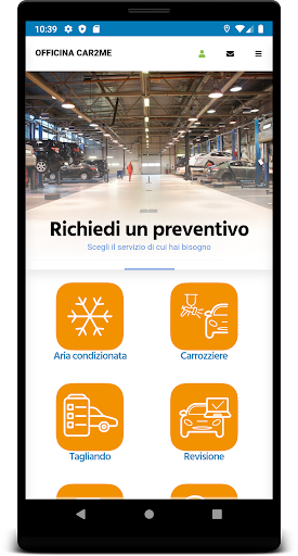 L’App di Officina Car2me ti ricorda le scadenze della tua auto come assicurazione, bollo e revisione. Attraverso le apposite sezioni potrai prenotare un appuntamento o richiedere un preventivo se necessiti di un intervento di meccanica, elettrauto, tagliando, carrozzeria, proponendo direttamente una data di appuntamento alla tua officina di fiducia; inoltre potrai consultare le promozioni attive e prenotare un appuntamento al prezzo più conveniente.