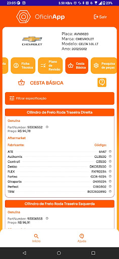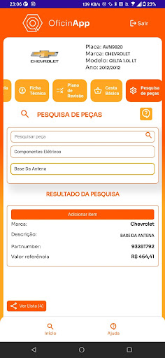 Consulta de peças com preço referencial.