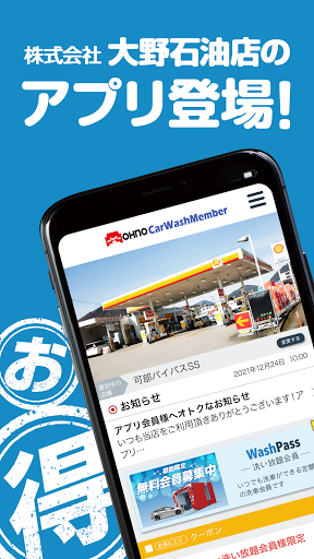 当社の公式アプリ「OHNO CARWASH」ではWashPass(セルフ洗車機 洗い放題会員)のお申し込み・お支払い・ご利用いただけます。またアプリにて当店で利用いただけるお得なクーポンや各種メニューの割引情報を配信しております。