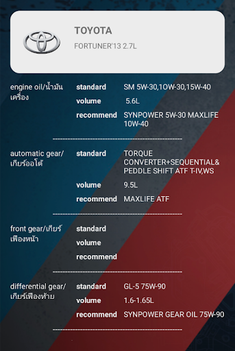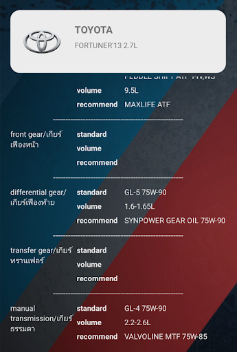 คู่มือการใช้ของเหลว เพื่อเปลี่ยนถ่ายให้ตรงรุ่น ทั้งปริมาณ และ แนะนำผลิตภัณฑ์ที่เหมาะสมสำหรับรถยนต์