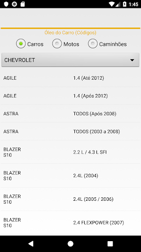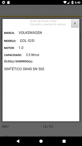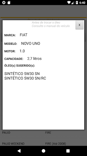 Ajuda para encontrar o óleo do motor do veículo, viscosidade e a quantidade.