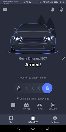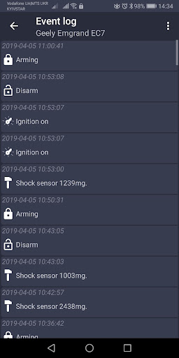 Signals on the smartphone from car alarms and sensors (shock, tilt), as well as alerts about engine start, battery status, exit from the geofence;